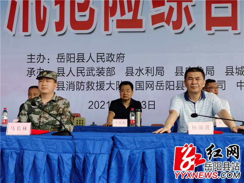 岳阳县融媒体中心7月23日讯(记者 周星亮 郝莉莎)为强化全县防汛抢险意识,检验我县防汛抢险应急预案的实战效果和抢险队伍的实战能力,7月23日,我县在中洲大堤宝塔湖堤段开展防汛救灾综合应急演练。县委常委、县人武部政委马长林,副县长杨前进出席并讲话。县水利局、县应急管理局、县城管局、县消防救援大队、中洲乡政府、国网岳阳县供电公司参与演练活动。