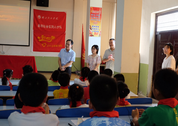 (本网讯)7月21日上午,市少先队总辅导员周进、团市委学少部部长万振元、团区委副书记何舟一行到东沟镇中心小学慰问湖北经济学院工商管理学院初心支教队的全体成员和暑期“七彩假期”、“希望家园”支教班学生。