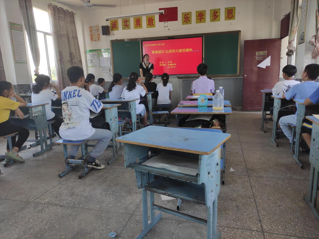 7月22日,鄂州市鄂城区青年讲师团成员、长港镇团委书记张菁来到长港中学为“希望家园”的学生们开展学习贯彻习近平总书记“七一”重要讲话精神专题宣讲。