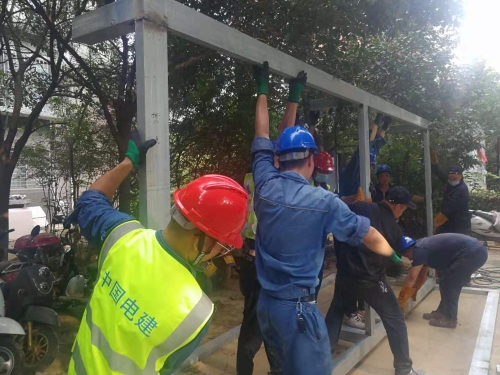隆福国际小区是个上万人小区,各种变电柜在底下室,暴雨造成地下室进水,公司工程事业部和国网河北电力公司抢修队伍齐肩奋战,在抢修任务中有共产党员,冲在前,做表率,挖低坑,埋好基础,深夜时分,在抢修现场忘记疲劳,努力工作,赢得了居民的赞誉,隆福社区群众送来了西瓜等慰问品,表示真诚的谢意。27日,经过连夜奋战,全面安全检查,将全面恢复小区用电。