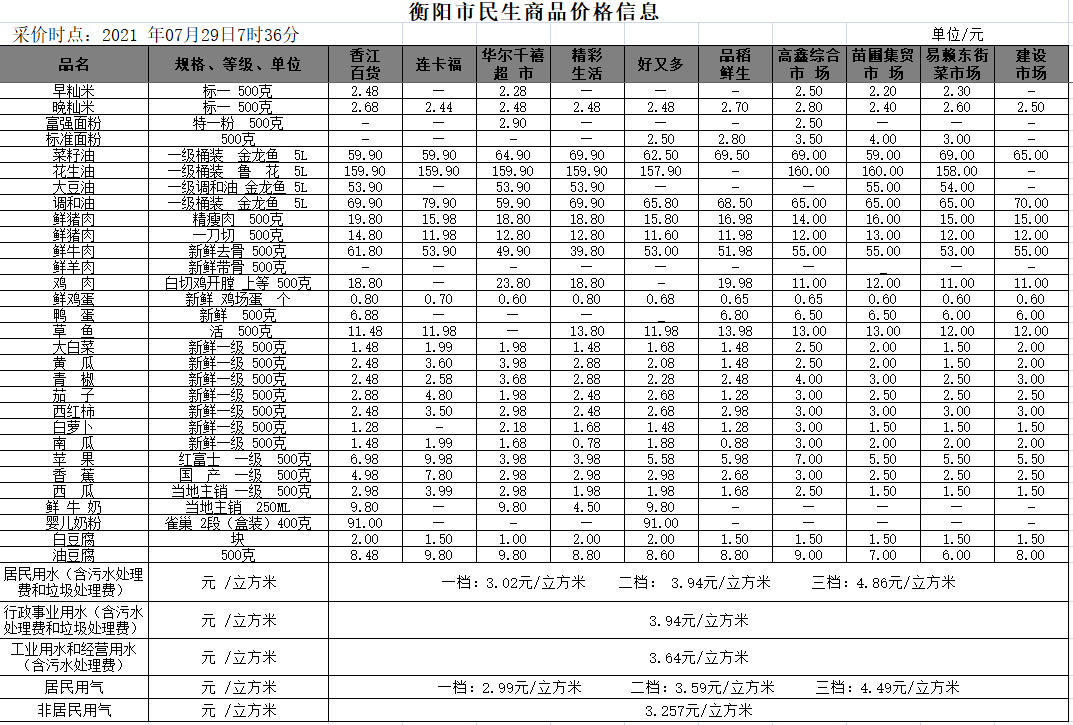 · 【物价】 2021-07-29衡阳市民生价格信息