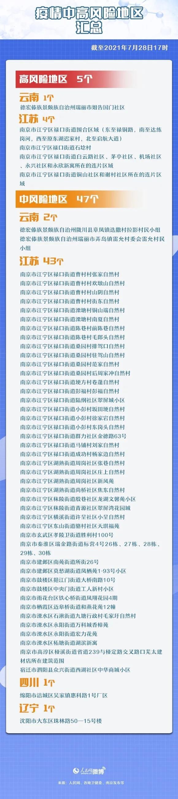 截至7月28日17时,全国有5个高风险地区,47个中风险地区。防控勿松懈!