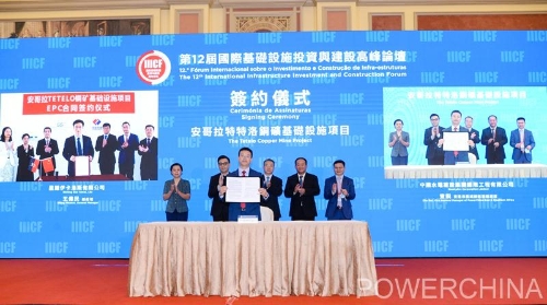 7月23日,在第12届国际基础设施投资与建设高峰论坛项目签约及成果发布仪式上,中国电建通过视频连线方式签署了波黑布拉加伊熟料水泥厂项目和安哥拉特特洛铜矿基础设施项目两个EPC合同。澳门贸易投资促进局主席刘伟民,中国对外承包工程商会会长房秋晨、副会长于晓虹,公司党委常委、副总经理李燕明见证项目签约。