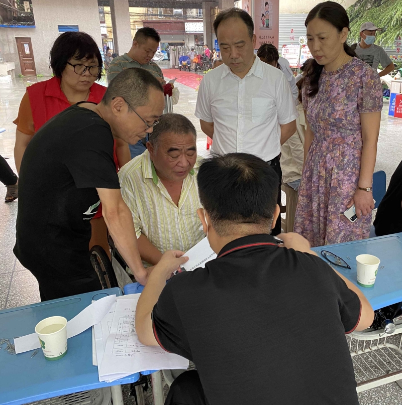 2021年7月27日下午,龙子湖区副区长陈礼超来到凤二小北校区(为方便残疾人,残疾评定临时鉴定点),实地查看了集中评残情况,慰问了评残专家、残联工作人员和参评的残疾人朋友,对我区残疾人证的评定和管理工作提出建议和意见。