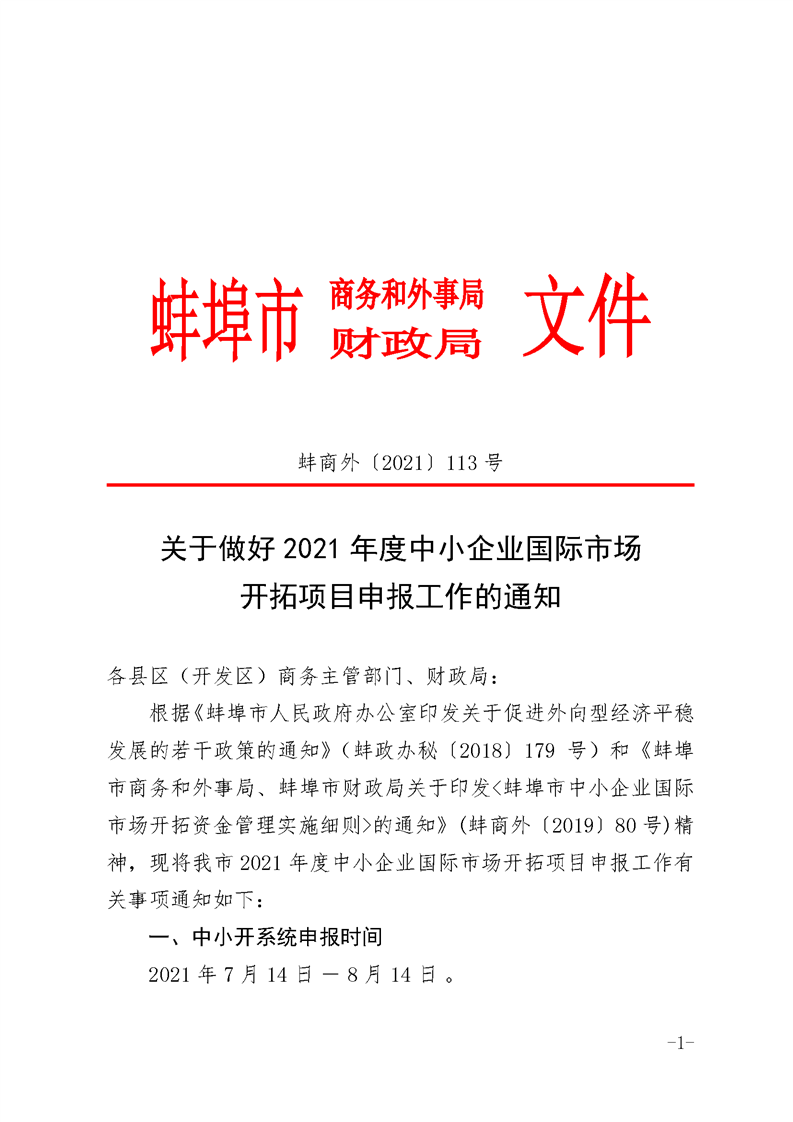 关于做好2021年度中小企业国际市场开拓项目申报工作的通知
