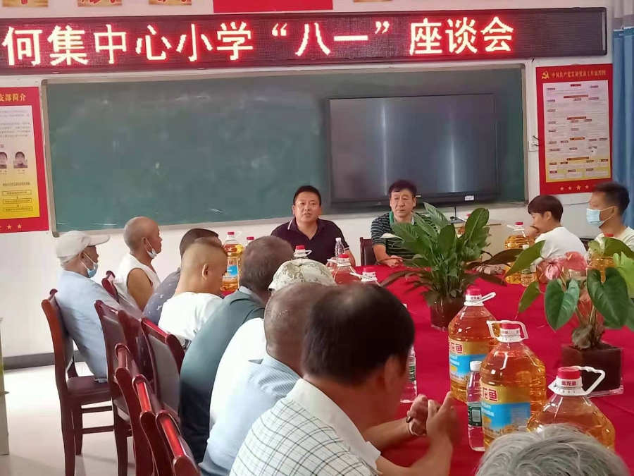 今年是中国人民解放军建军94周年,固镇县何集中心小学深入贯彻落实党中央、国务院、中央军委关于加强军政军民团结的决策部署,在“八一”期间开展拥军优属慰问活动,举行“八一建军节”退役军人代表座谈会。
