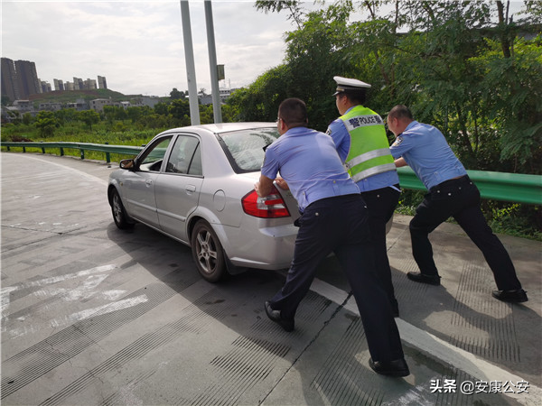 7月21日上午,安汉中队民警在进行道路巡查时,分别遇到一起车辆爆胎和车辆故障的突发情况,在确保安全的前提下,立即化身推车小哥,帮助驾驶员将车辆推至安全地带,同时联系施救对其进行救助,及时消除了安全隐患。
