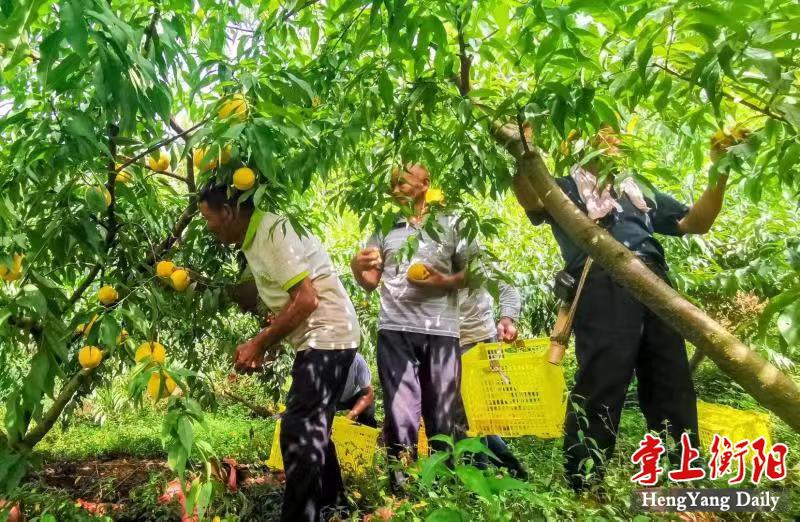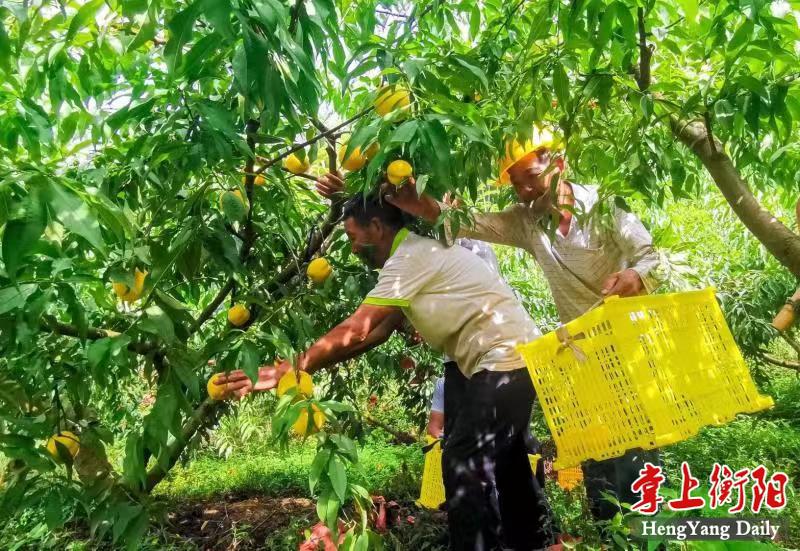 据了解,大树岭桃花园是一个集农业采摘、观光旅游、农家乐于一体的综合性示范园。大树岭生态农业有限公司于2016年流转了180亩山地种植黄桃,采用“公司+合作社+农户”的模式,直接或间接带动周围21户、64名村民就业,户均年增收10000元以上。公司借助当地山水合一的特色旅游资源,以黄桃采摘为卖点,经过规划设计与建设,使旅客体验农业农村生活,达到休闲观光、娱乐为目的农业经营形态。截至目前,黄桃采摘已全面开启,预计产量达2.5万公斤左右。
