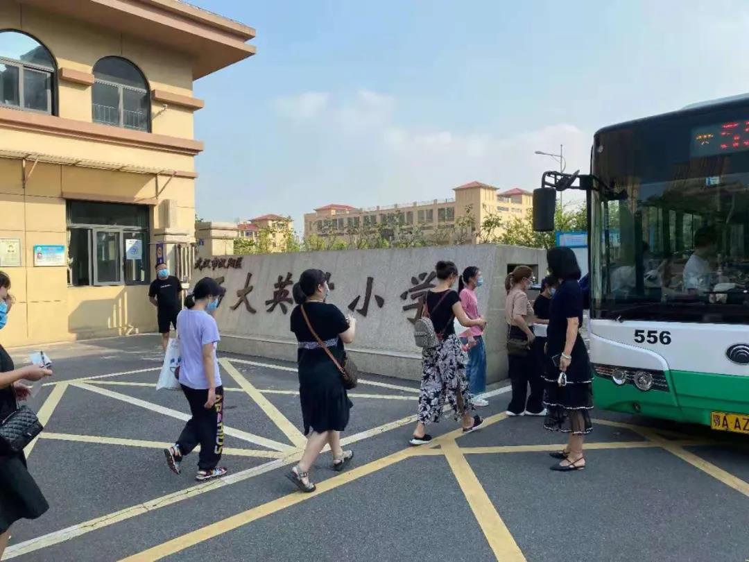 8月1日上午8点30分,停靠在汉阳区西大英才小学校门口的疫苗接种“摆渡车