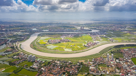 城市“生态绿心”内部,300多万莆田人民的母亲河木兰溪缓缓流过(7月21日摄,无人机照片)。