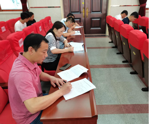 下午14时40分,区直各部门班子成员在区政府大礼堂进行现场测试。全体干部结合前段时间警示教育、纪律教育和宣传教育学习,认真思考作答,真正把知识测试作为检验学习成果的机会,在规定的40分钟答题时间里,全部完成答题。