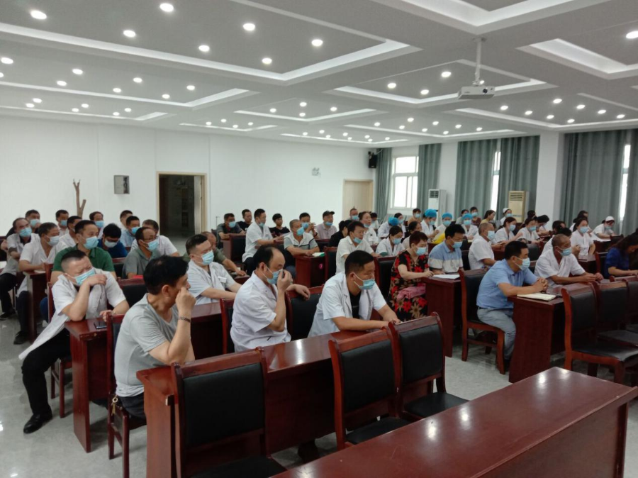2021年8月3日上午7点在院三楼会议室对全院职工及所有在岗乡村医生召开《新型冠状病毒肺炎诊疗方案(试行第八版修订版)》培训会,由徐琛副院长领读文件培训学习。