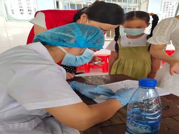 “人太多了,光靠两个护士进行信息登记太慢了,我们加一组登记吧,谁登记快的帮忙登记下”,网格员对着正在引导村民的工作人员、志愿者随口提了一句自己的想法,刘斌小学校长刘水平便自告奋勇地说“我来!”,说着便找护士要来未登记的登记表去办公室复印,随后便招呼着后面排队的村民上前来登记。一上午,刘斌村就已经完成了940人的核酸检测采样,也正是这940人的信息登记让护士的手指写到僵硬,但她们没有一丝一毫的抱怨,偶尔有工作人员看她们太辛苦,替换她们进行信息登记,但她们也仅仅休息两三分钟喝口水便立马回到工作中,丝毫不敢懈怠。