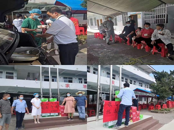 梁子镇商会为刘斌村检测点送来了矿泉水、绿茶等解暑物资,梁子镇防指部后勤保障组也送去了绿豆汤,为炎热夏天依旧坚守岗位的医护人员、工作人员以及积极配合工作的村民送去了清凉。
