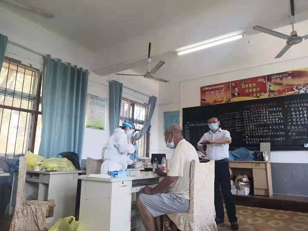 【疫情无情人有情】暑气蒸腾,烈日炎炎,虽然刘斌小学安排了学校内唯一一间有空调的教师集体办公室供医护人员进行采样,但就算空调温度调到最低,也抵挡不了8月的炎暑以及防护服的闷热,医护人员防护服里面的衣衫早已湿透,但她们依旧毫无怨言,默默忙碌着。排队接受核酸检测的村民,也没有一句怨言,当有人不理解为什么非要10个人一组才能上去的时候,甚至跟工作人员一起向村民进行解释,十分体谅工作人员的辛苦。