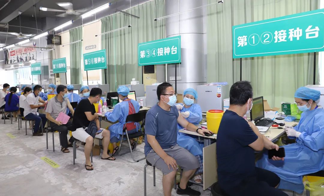 居民正在侨乡体育馆疫苗接种点接种疫苗