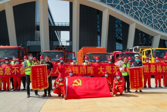 从7月22日至28日,项目部应急抢险突击队又先后奔赴地铁2号线沙门站、4号线清华园站、5号线颐和医院站、月季公园站、黄河路站等多处地铁站点支援抢险,并圆满完成了任务,获郑州市防汛抗旱指挥部、郑州地铁集团授予锦旗表彰。