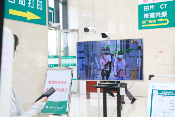 进入门诊大厅内,首先占据视线的是热像测温仪。电子显示屏上显示来往人员的体温,绿色代表正常,如果是红色就要在留观区等候核查。这是“第三关”。