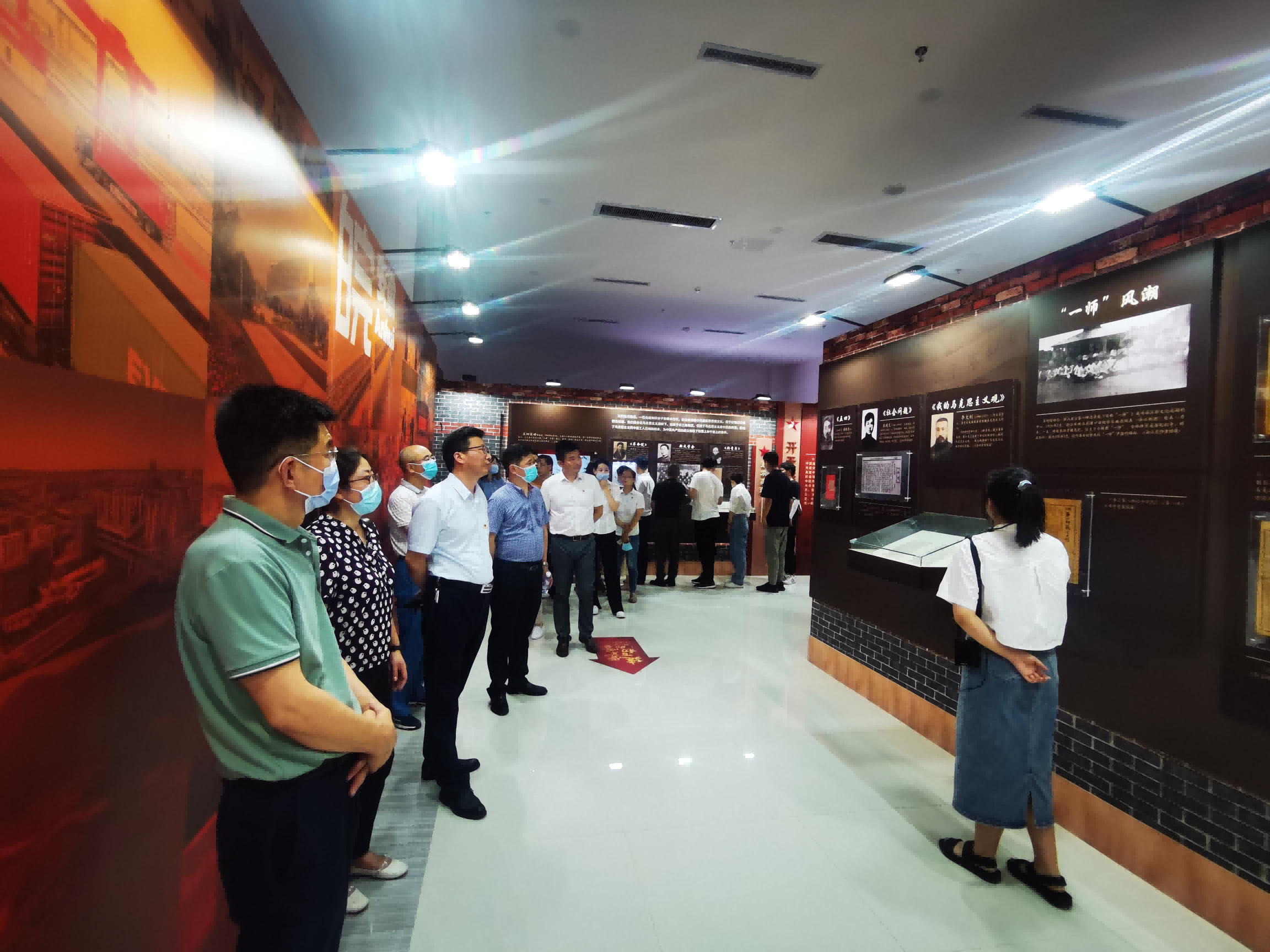 参观过程中,讲解员带领大家沿着“开天辟地宏图起”、“革命洪流风云咤”、“中流砥柱御外侮”、“天翻地覆慨而慷”四个展区,通过图片、文字、视频、实物等形式重温了中国共产党团结带领长三角地区人民,谋求民族独立和人民解放的峥嵘岁月和光辉历程。