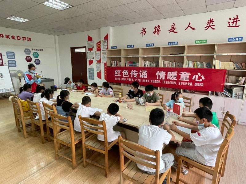 8月10日上午,由团市委、市教育局、市少工委主办,花山团区委、三社联动项目组、金安社区党委、殷实E家共同协办的“红色传诵.情暖童心”活动在金安文化广场开展。
