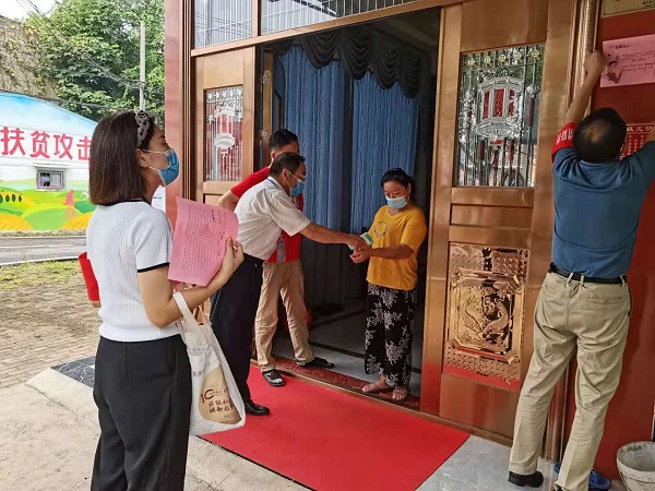 (本网讯)为进一步加强对疫情防控重点人员居家隔离的精准管控,确保居家隔离要求不折不扣落到实处,8月9日,东沟镇余湾村第一时间对从武汉市江夏区返乡人员进行管控,组织人员上门了解、掌握实际情况,送上温馨提示牌。并将温馨提示张贴在居家隔离群众家门口的醒目位置。