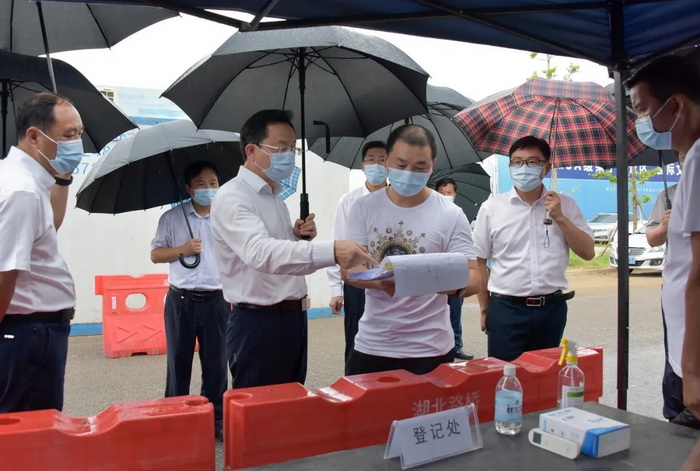 建筑工地疫情防控工作,百密不容一疏。在武阳高速公路(鄂州段)第二标段工地、梧桐湖国际社区项目现场,孙兵当场指出防控薄弱环节,提出整改意见。他督促参建各方,要强化工地管理,对建筑工地实施全封闭管理,最大限度减少人员外出流动,充实防疫力量,实行24小时值班制度,严格执行“四必”要求,切实堵住防控漏洞;要强化筛查摸排,落实工人实名制,加强信息登记,全面排查近期中高风险地区来(返)我市人员,及时摸清情况底数;要筑牢安全屏障,加快疫苗接种步伐,落实疫情监测和信息报告制度,实现社会面干净;要强化督促指导,推动党员领导干部下沉防疫一线,指导督促企业落实疫情防控各项措施,确保建筑工地施工安全。