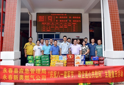 8月2日上午,永春县应急管理局党支部和永春县新奥燃气有限公司党支部联合开展“庆祝八一建军节,政企连心共慰问”主题党日活动。