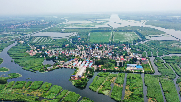 这是白洋淀内的村庄(8月14日摄,无人机照片)。
