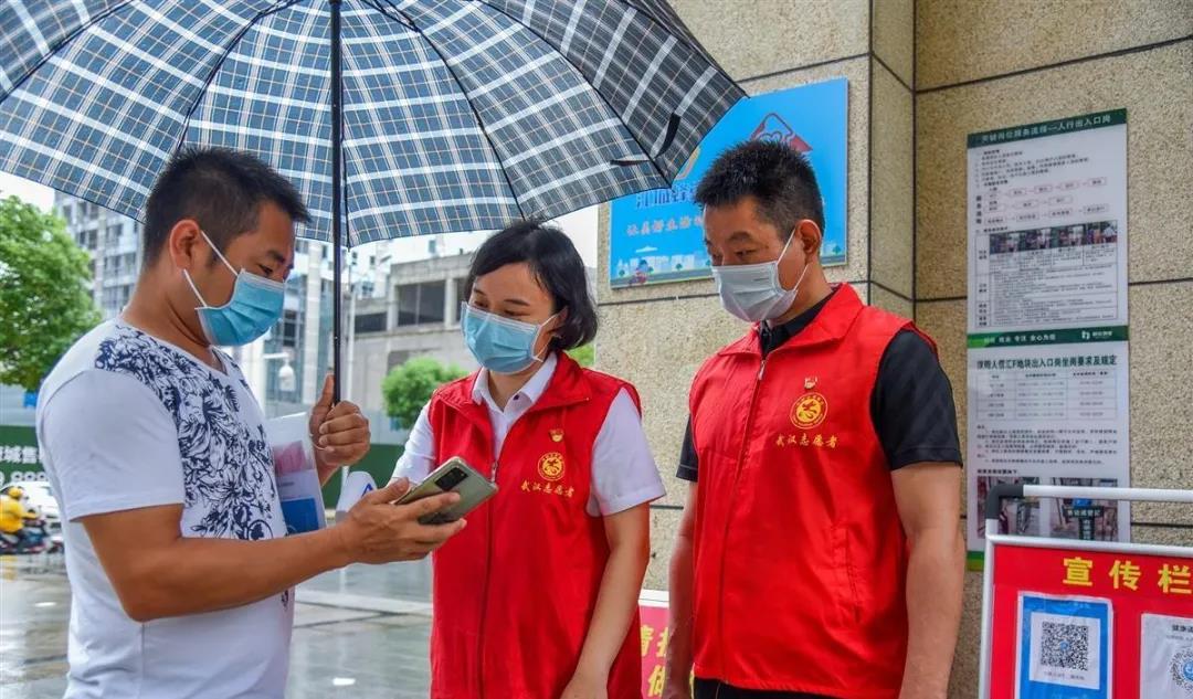 像杨之实、李纯这样的“夫妻档”志愿者还有洲头街洲头社区的熊小华、张丽娜夫妻俩。他们在“武汉微邻里”看到社区发布的全民核酸检测和排查工作需求后,立刻报名参加。8月4日,夫妻俩下沉社区担任志愿者,每天负责值守在洲头社区万福国际小区的大门口,提醒进出居民扫码、戴口罩,守好小区第一道防疫大门。