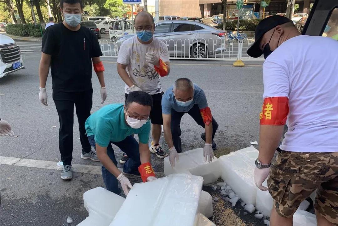 戴浩在为核酸采样点搬运冰块降温