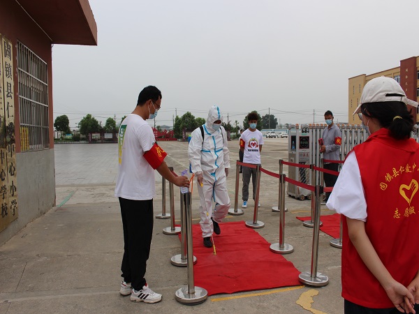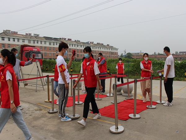 师生入校演练环节模拟了开学后师生返校的情景,学校安保人员逐一对返校教师进行体温检测、查验安康码和疫苗接种证明、消毒。值班教师对学生进行体温检测和酒精消毒。如发现师生体温异常,迅速带至临时隔离室进行复测,如确认发现体温异常者,立即启动疫情防控应急预案,详细登记其信息并上报学校疫情防控负责人,立即将通道封闭并进行区域消毒。