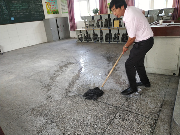 首先,各位老师对整个校园进行了大扫除并消毒;然后,陈凯校长指导大家进行入校演练:戴口罩、扫码、登记、测体温、消毒、洗手。