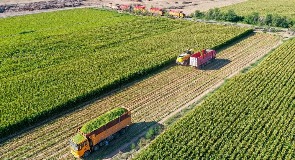 大丰镇同发饲料作物种植农民专业合作社理事长热西提·牙生说:“今年青贮亩产量5吨半左右,今年的价位也比较好。我们合作社的6台机子每天平均下来收将近2000亩地,2万多亩地估计20天全部收完。”(来源 呼图壁县融媒体中心)