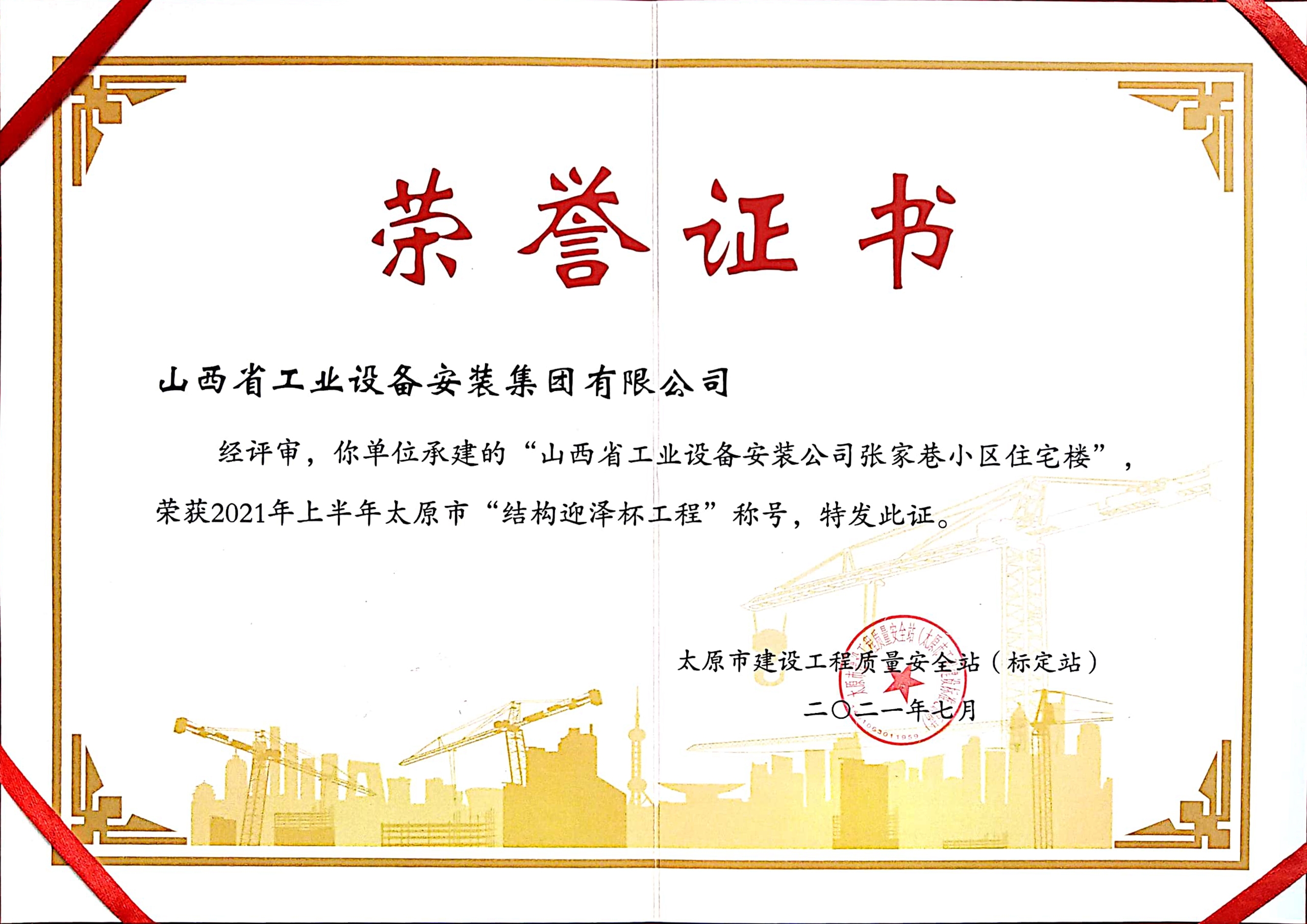 近日,绿色建造工程公司张家巷小区住宅楼项目荣获2021年上半年太原市“结构迎泽杯工程”奖项。