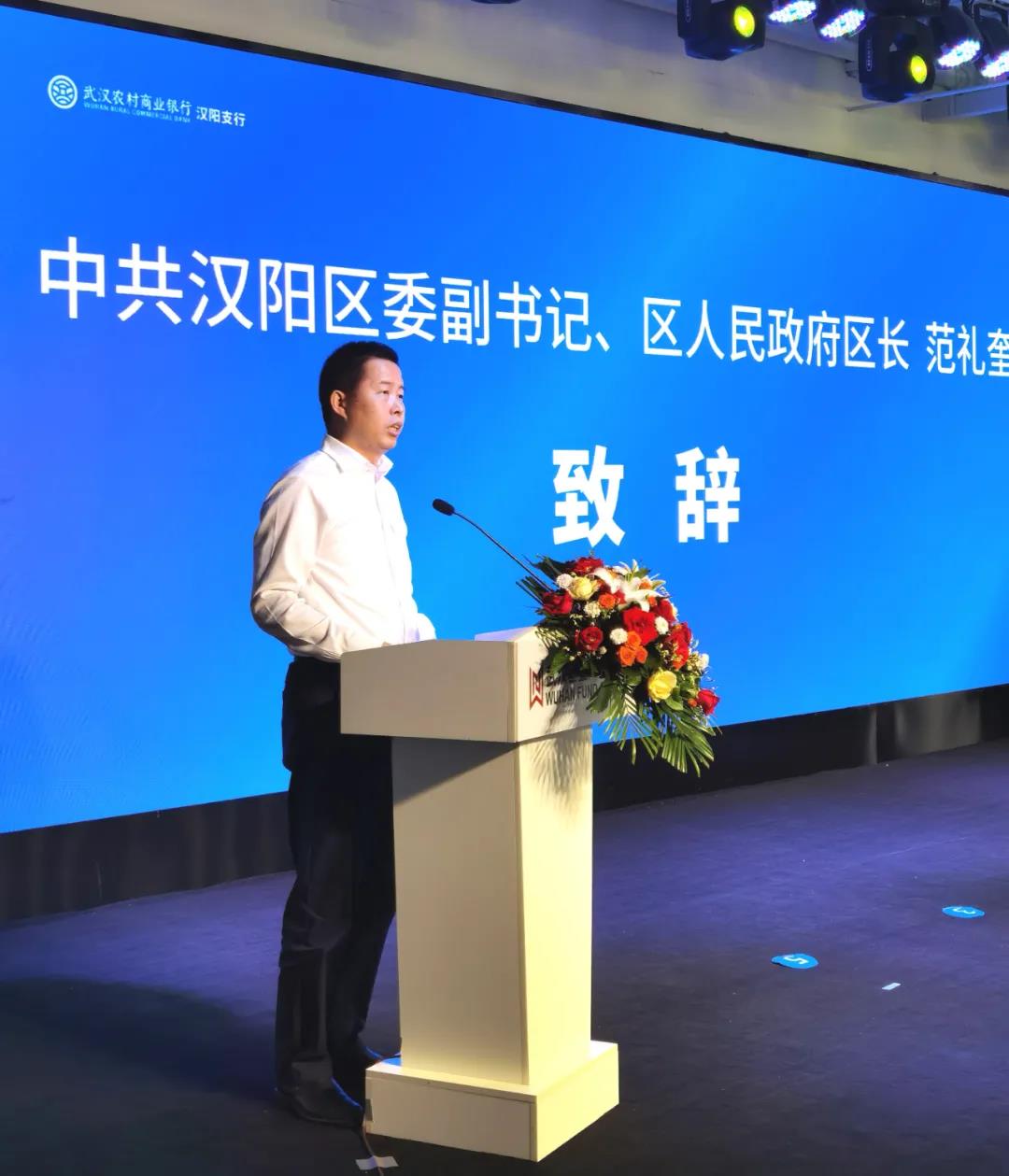 会上,汉阳区委副书记、区长范礼奎,湖北省再担保集团党委副书记、总经理龚平分别致辞;汉阳区委常委、常务副区长万磊发布汉阳区“再担园区贷”政策激励措施。武汉市地方金融工作局副局长魏森、武汉市融资担保公司总经理邓正国出席活动。