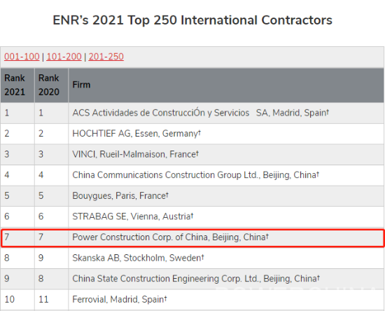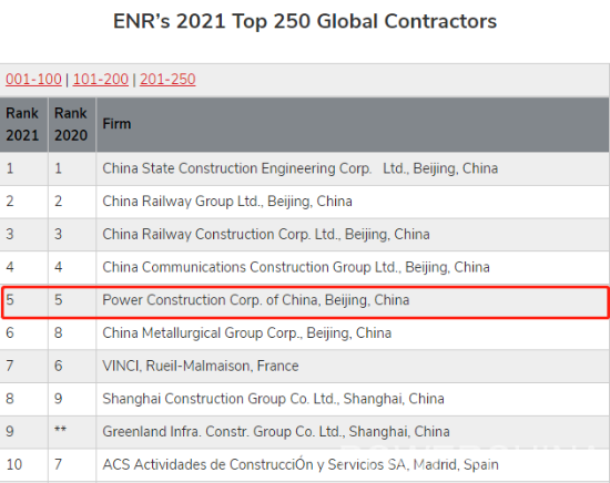 当地时间8月18日,2021年度美国《工程新闻纪录》(ENR)揭晓了“全球工程承包商250强”和“国际工程承包商250强”双榜排名。其中,中国电建分别位列第5位和第7位,全球最大电力工程承包商地位稳固。