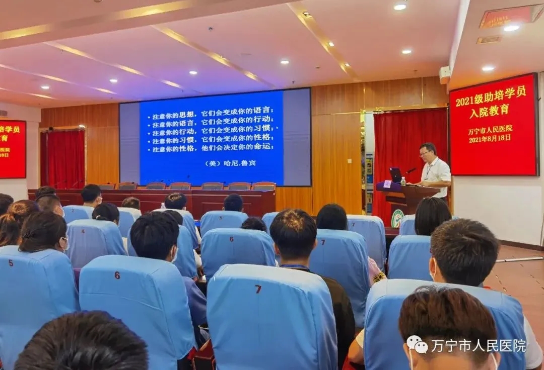 在中国医师节来临前几日,医院举办了《2021级助培学员入院教育》,陈吴荣院长、范平云常务副院长、彭红伟副院长及相关科室主任进行了医院概况、医院文化、医德医风与职业素养、医院规章制度、医疗质量和安全等方面内容培训,为新入院的学员们带来精彩的课程,旨在引导和启发每一名医师要主动思考和积极践行如何在行动上争当好医生,同时要树立正确的价值观、社会观、道德观,讲医德、重品行,尊重患者,敬畏生命,尊重患者权利,维护患者利益,善待病人。