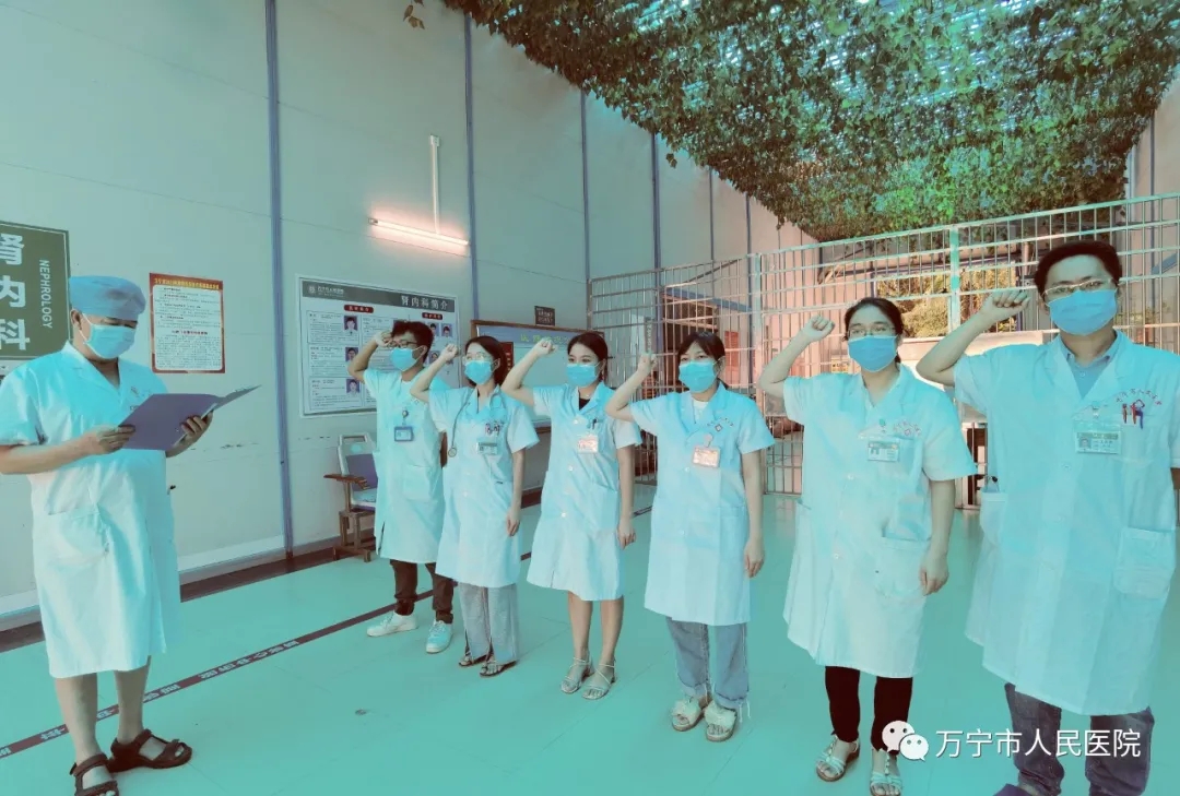 在中国医师节到来之际,医学影像科、超声医学科、肾内科、神经内科、全科医学科、神经外科、泌尿外科等科室自觉组织重温中国医师誓言活动,科室主任带领年轻医师们一同举起右拳庄严宣誓:“我志愿献身人类的健康事业,自觉维护医学的尊严和神圣,敬佑生命,救死扶伤,平等仁爱,尊师重道....”,表达着他们投身医疗卫生事业的坚定决心,同时这誓言也激励着大家以更昂扬的热情、更高尚的医德、更精湛的技术投身于医疗行业,以自身的实际行动践行誓言。