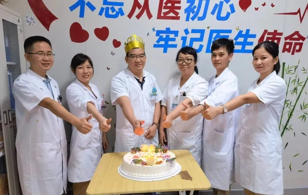 2021年8月19日,在“中国医师节”这一天,各临床医技科室的工作人员依然坚守在各自的岗位上,他们趁休息时间在科室内组织庆祝“中国医师节”活动,蛋糕、鲜花、美食,科室医务人员们一同分享着节日的喜悦,也向一年来辛勤工作的自己加油打气。在感染性疾病科的庆祝会上,有一位头发花白,但却精神饱满的85岁医者,郭仁庄主任如今依然坚持门诊出诊,他用自己的行动,践行了他“病人好,医生就好”的信仰及“敬佑生命、救死扶伤”的医者誓言,他的精神值得我们学习与赞扬!