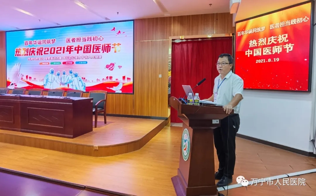 2021年8月19日,我院组织召开《“百年华诞同筑梦,医者担当践初心” 热烈庆祝中国医师节大会》,全院各临床医技职能科室主任,全院骨干医师代表参加会议。万宁市人民医院陈吴荣院长主持会议。