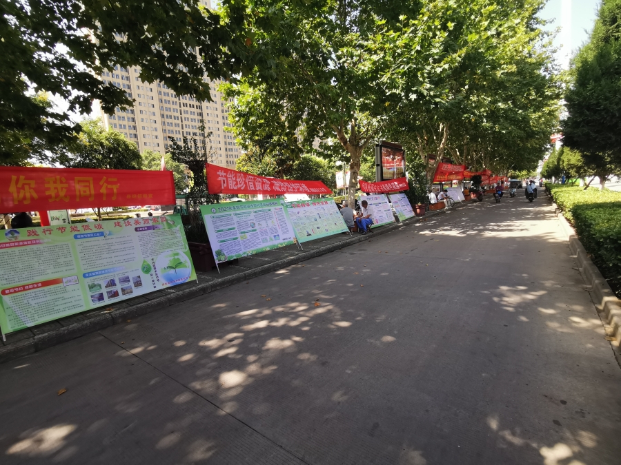 一是通过悬挂横幅、展板和发放宣传资料等形式向广大群众宣传节能环保、低碳生活的重要意义,倡导绿色生态、健康环保的生活方式,积极营造珍惜资源、节能环保的社会氛围。