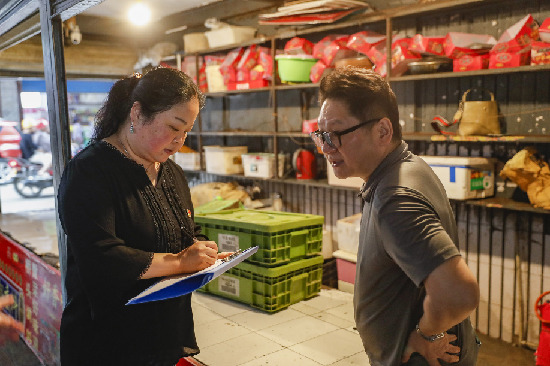 8月30日,在重庆市巫溪县宁河街道裕宁街,社区工作人员统计商户受灾情况。