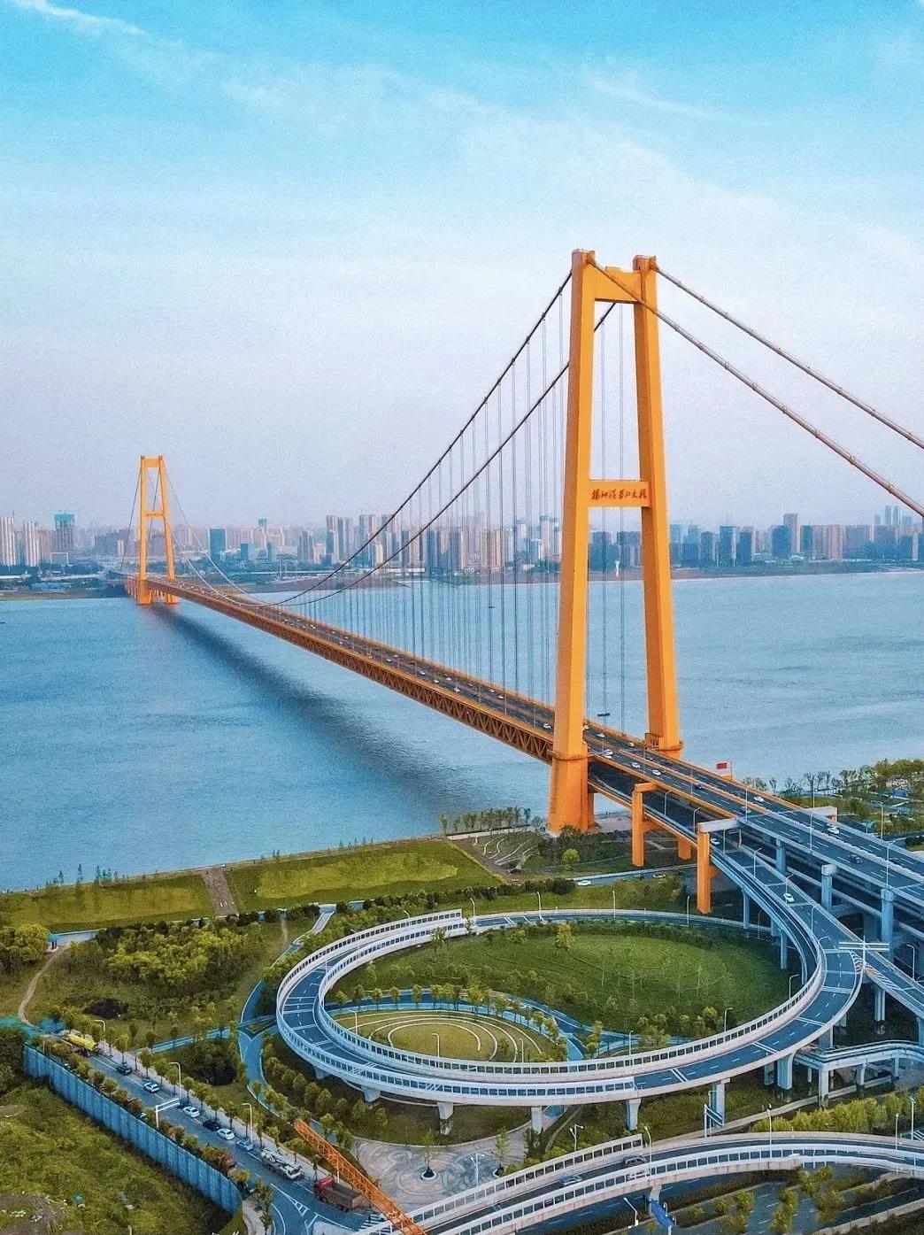 杨泗港长江大桥是武汉的第10座长江大桥,主跨1700米,江中间没有桥墩,一步跨越长江,是长江上首座双层公路大桥,也是世界上跨度最大的双层公路悬索桥。
