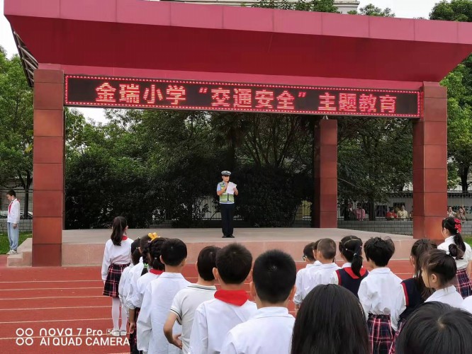 为增强学生的交通安全意识,切实提高学生自我防护能力,引导学生深入学习交通安全常识,做一个文明交通倡导者,9月6日上午,金瑞小学邀请楚江大队胡志斌警官对学生进行举行“珍爱生命 安全出行”交通安全主题教育。