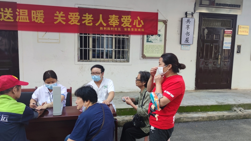 由于龙子湖区延安街道胜利四村社区辖区胜利三村小区、和平小区为铁路退休职工居住的老旧小区,小区内大多为退休职工。随着时间推移,部分离退休老人寡居行动不便,胜利四村社区党委与安徽景新城市运营管理有限公司蚌埠分公司党支部以为民测量血糖血压、理发为切入点,定期为老人开展志愿服务活动。