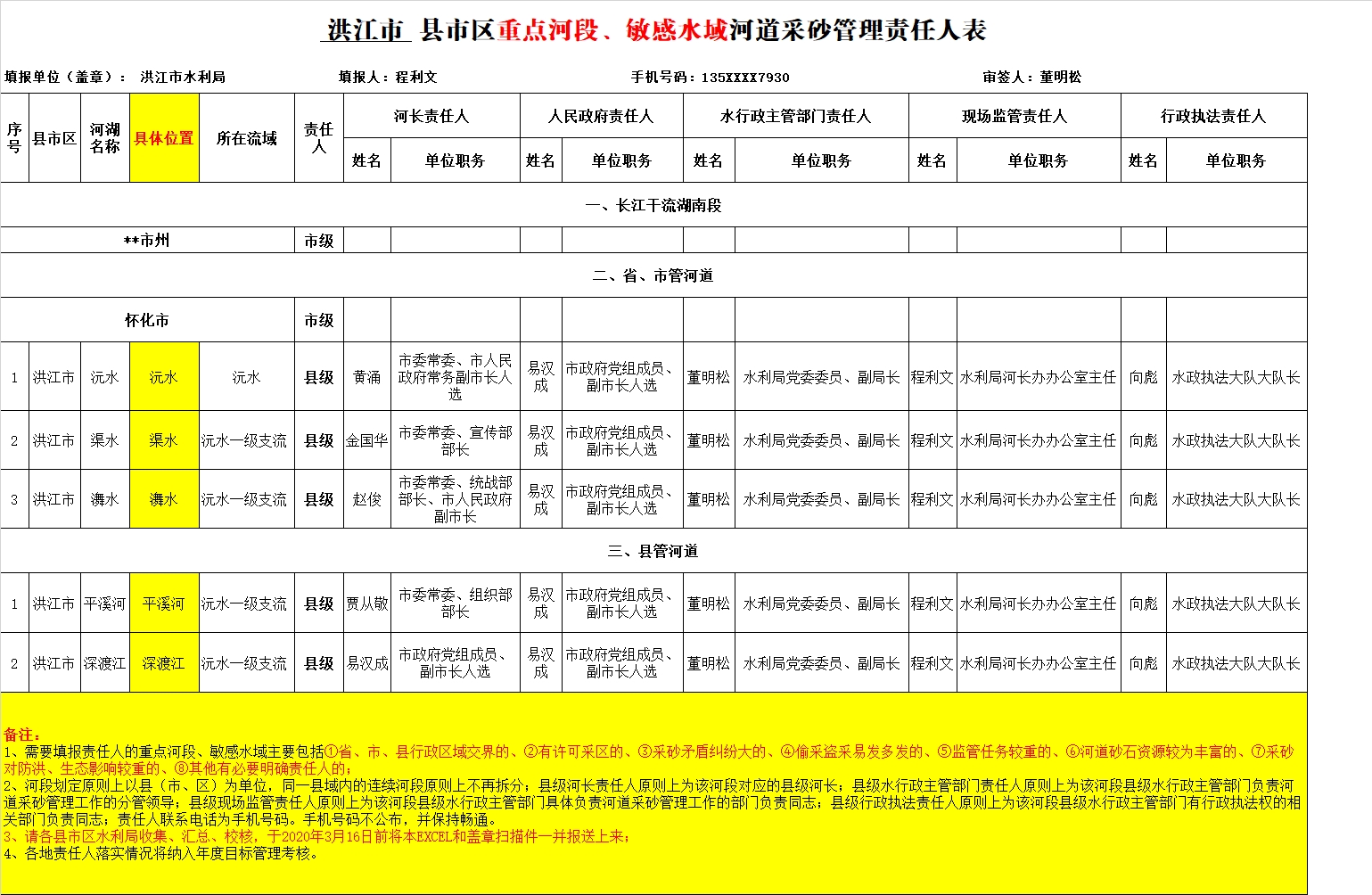 洪江市重点河段、敏感水域河道采砂管理责任人名单公示