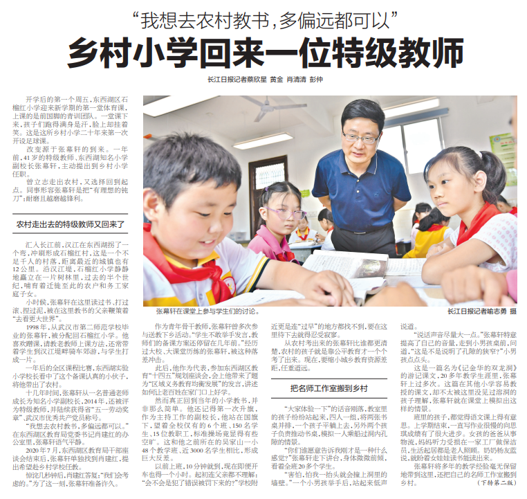 2020年7月,东西湖区教育局干部座谈会结束后,张幕轩单独找到肖建红,提出希望赴乡村学校任教。