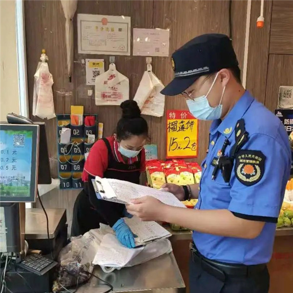 重点检查商户进门扫码测温、一米线设置、店内消毒记录、员工体温记录等措施,对不符合防疫要求的商户及企业开具责改清单,并约谈相关负责人,要求立行立改,确保辖区“三类场所”疫情防控落实到位。一周来,执法队累计检查餐饮单位314家、商务楼宇27栋,商超22家、社区3个。