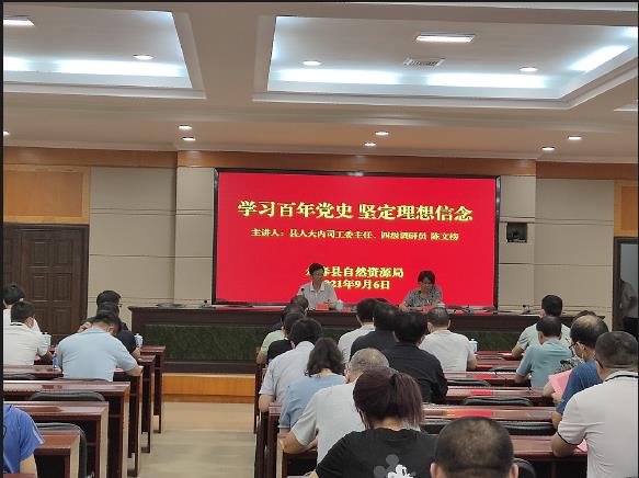 为深入学习贯彻习近平总书记在庆祝中国共产党成立100周年大会上的重要讲话精神,推动党史学习教育深入开展,9月6日晚上,永春县自然资源局邀请县人大内司工委主任、四级调研员陈文榜同志为全体党员、干部职工作《学习百年党史坚定理想信念》专题宣讲。