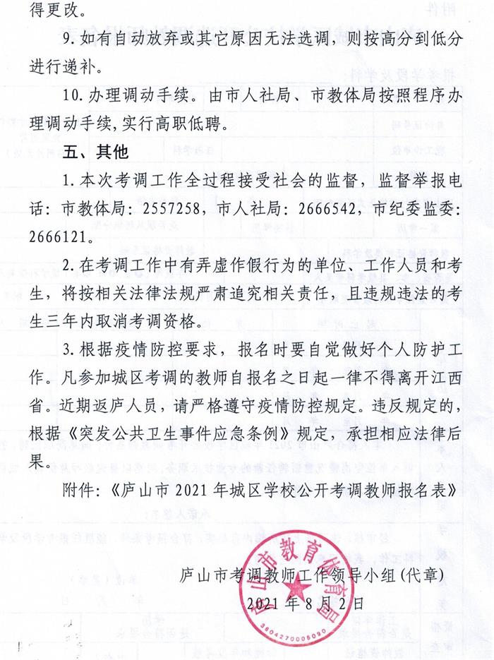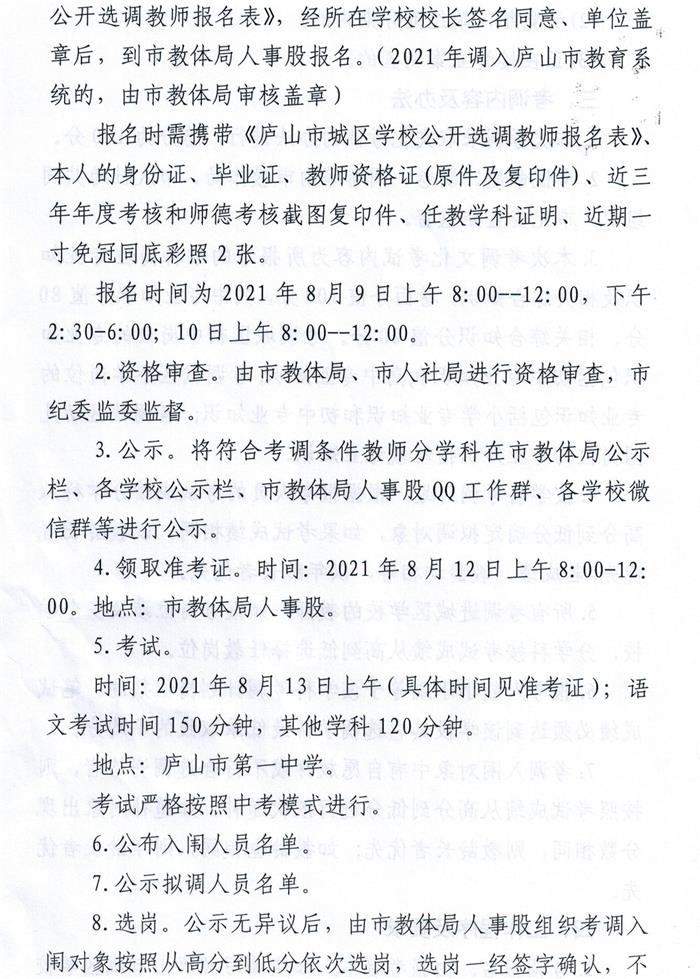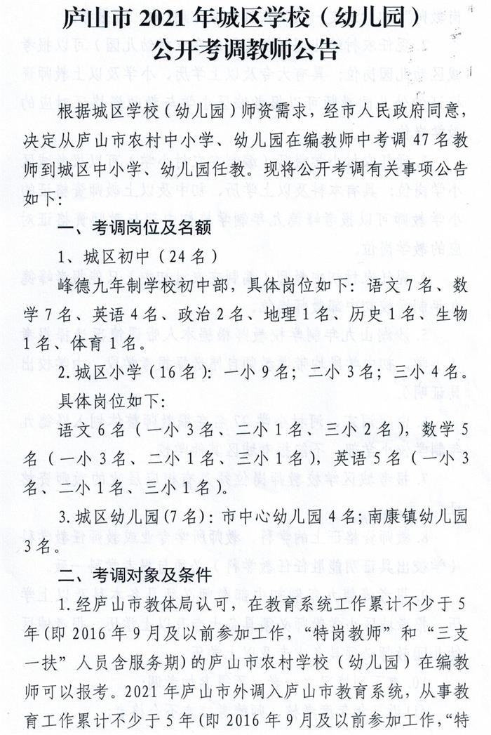 庐山市2021年城区学校(幼儿园)公开考调教师公告